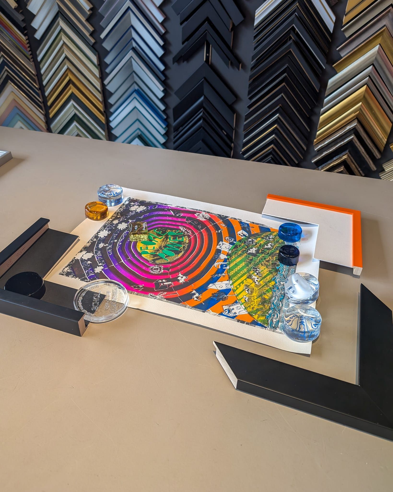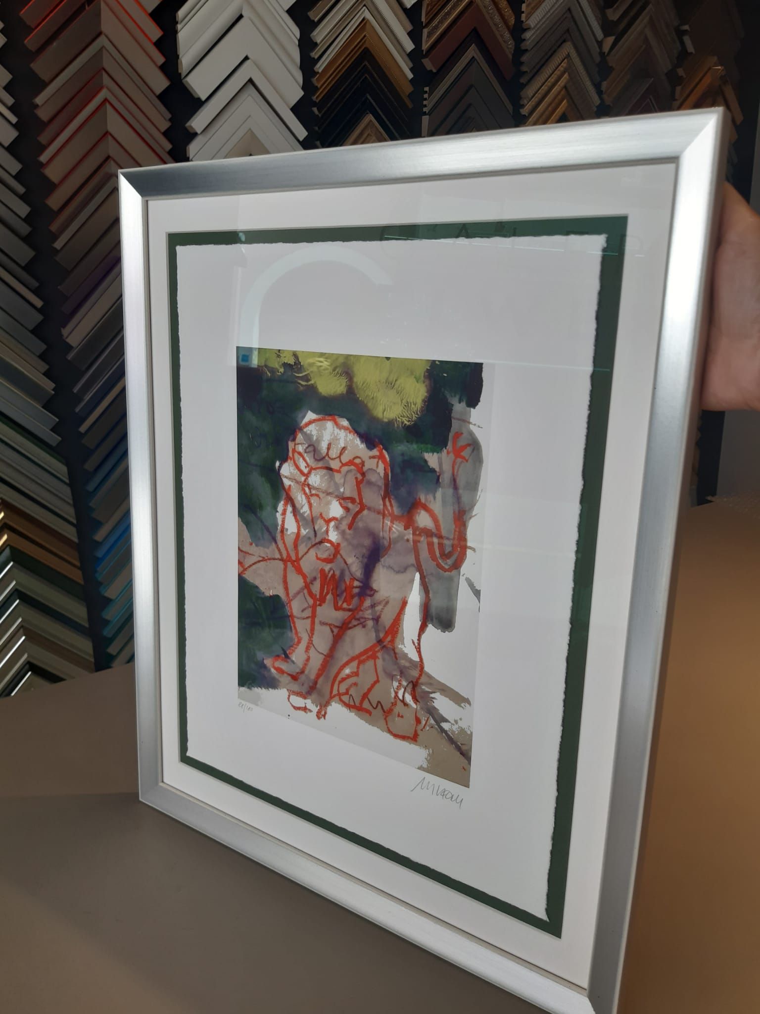 Dank unserer riesigen Auswahl an Leisten-, Passepartout- und Glasmustern erhalten Sie einen anschaulichen Eindruck davon, wie Ihr Bild aussehen wird. Wir errechnen Ihnen im Normalfall sofort den Preis, gerne auch für verschiedene Varianten.
