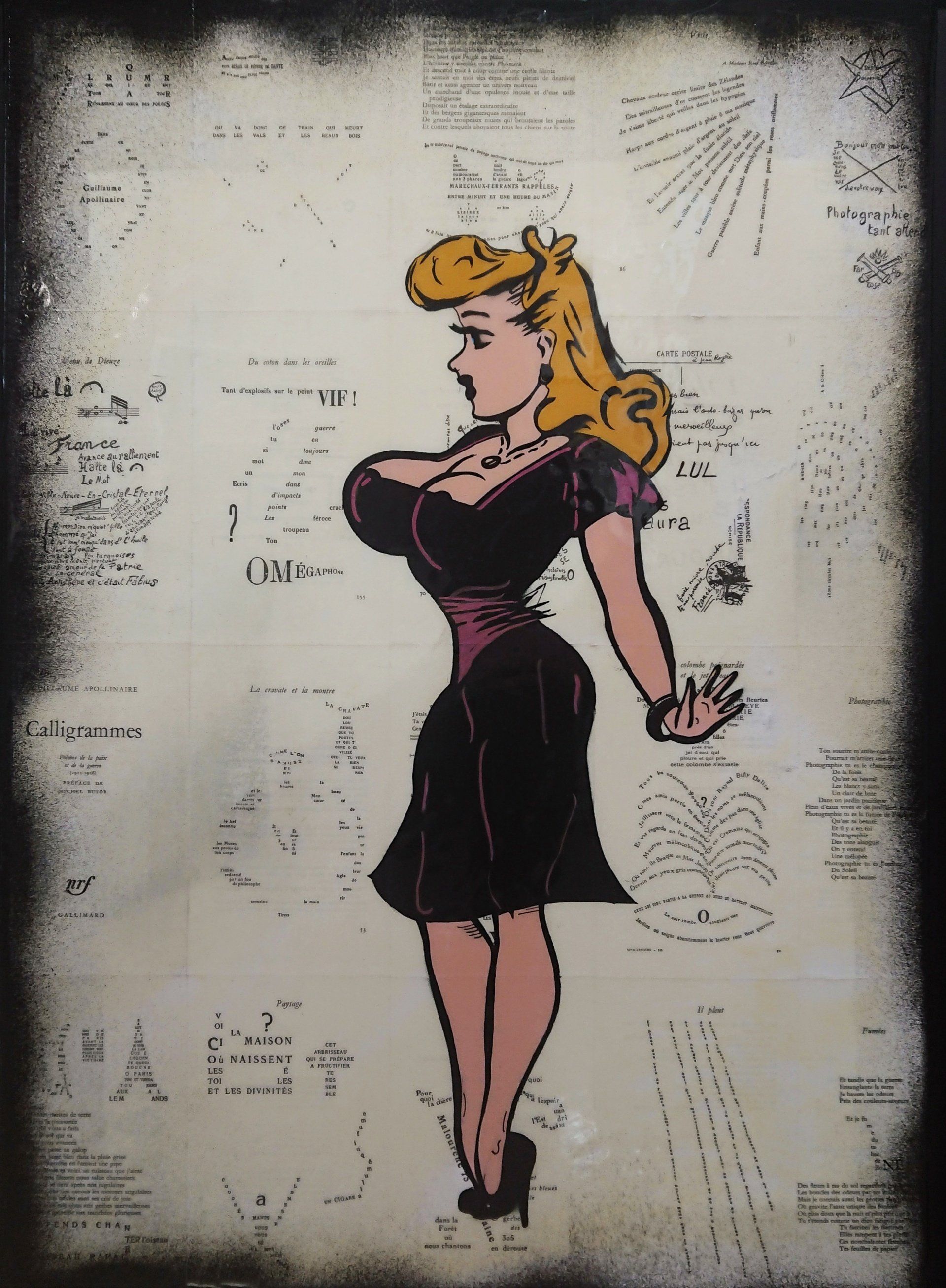 Erik Bonnet bewegt sich zwischen Street-Art und Pop-Art und nimmt seine Inspiration aus der Pop-Kultur von heute und gestern. Er nimmt Ausschnitte des Science-Fiction, des Krimi-Genres, von Comic und Film und hinterfragt mit seinen Farbbomben und seinen Filzmalereien die Normen der Gesellschaft.