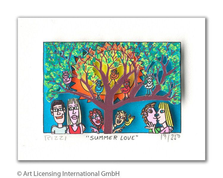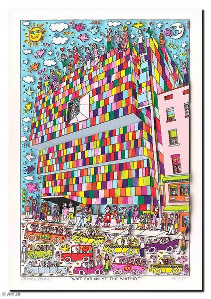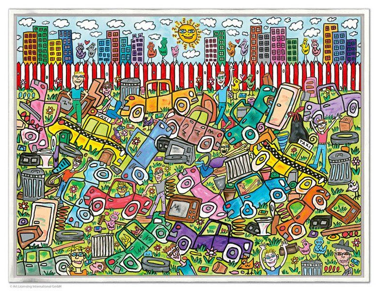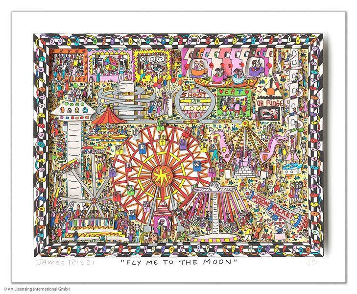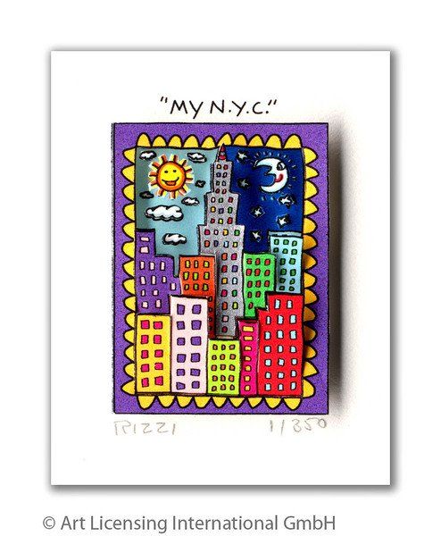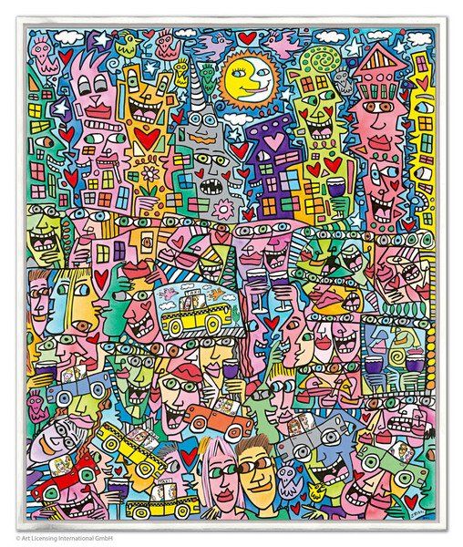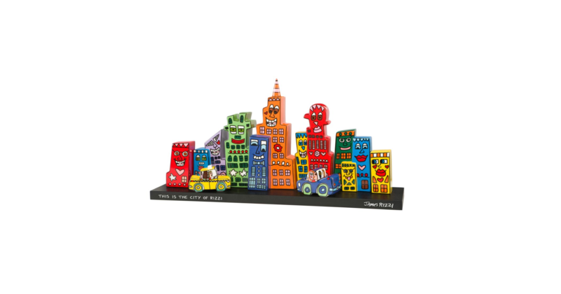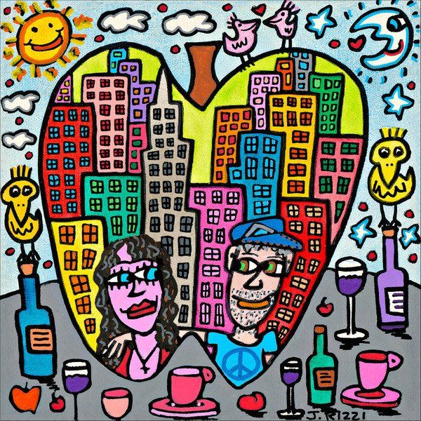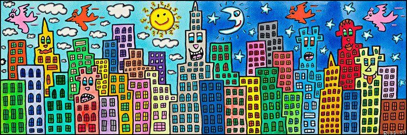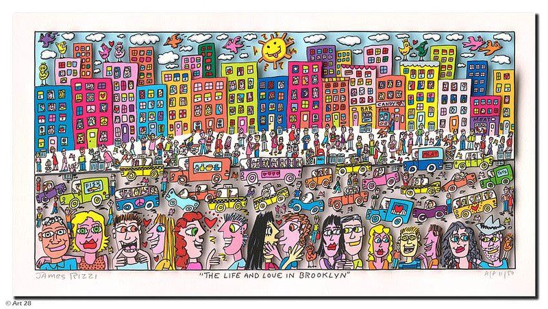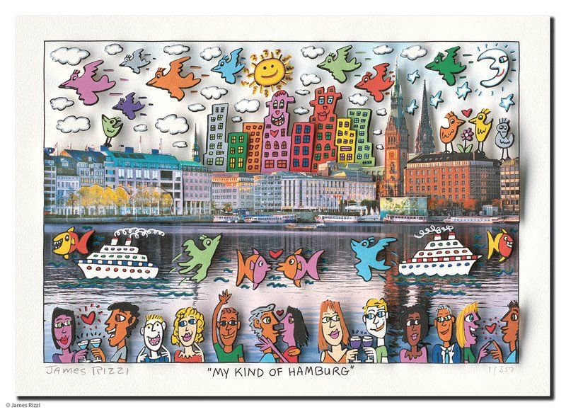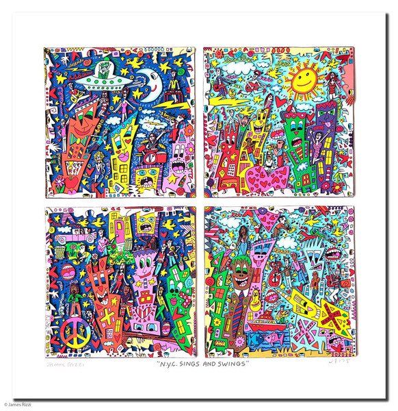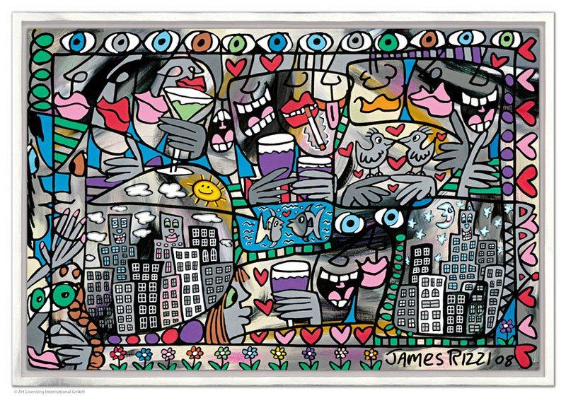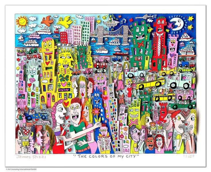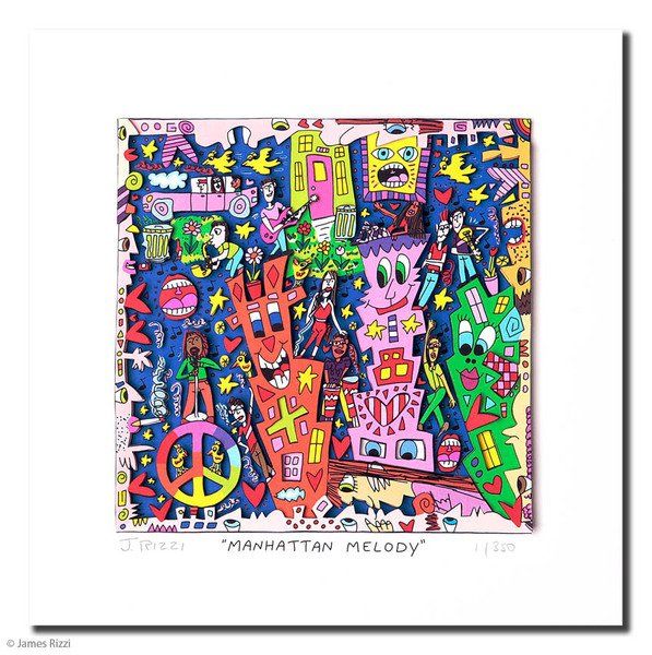 1950 in New York geboren, war James Rizzi ein Künstler der Pop-Art und hatte sich mit seiner naiven Kunst weltweit einen hohen Stellenwert erarbeitet. Seine Gemälde haben sehr häufig seine Heimatstadt New York und deren Menschen und Lebensweisen als Motiv.