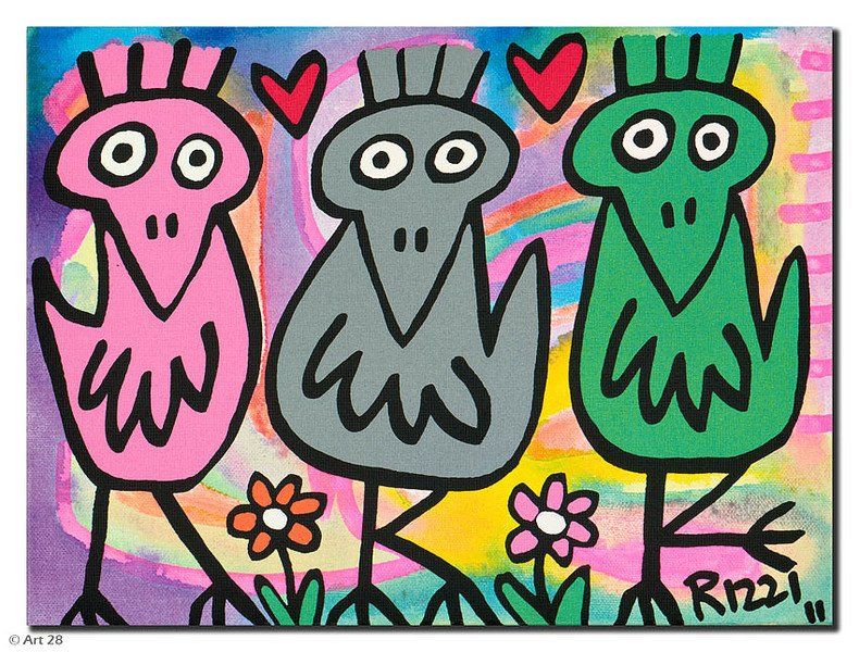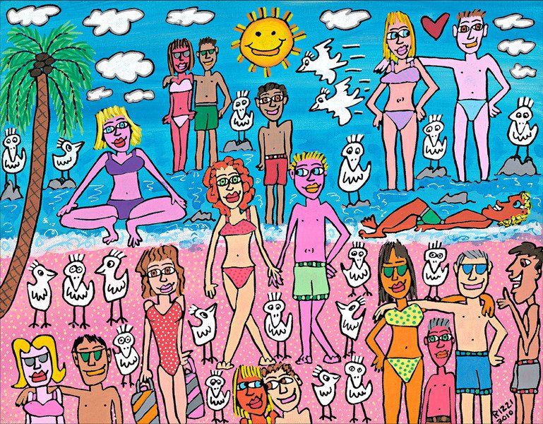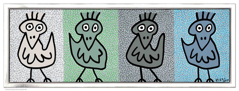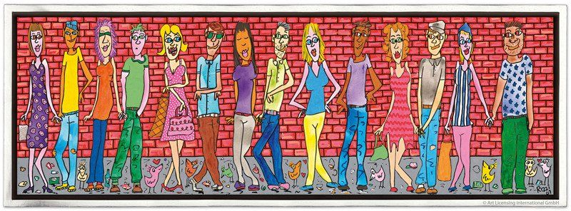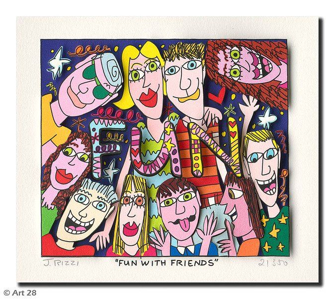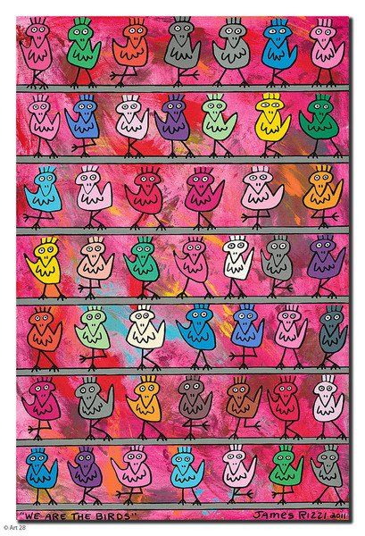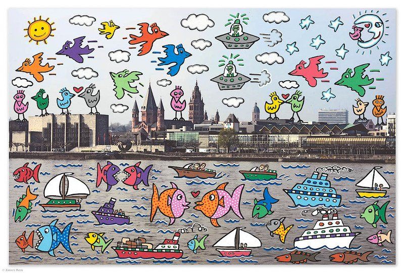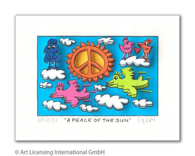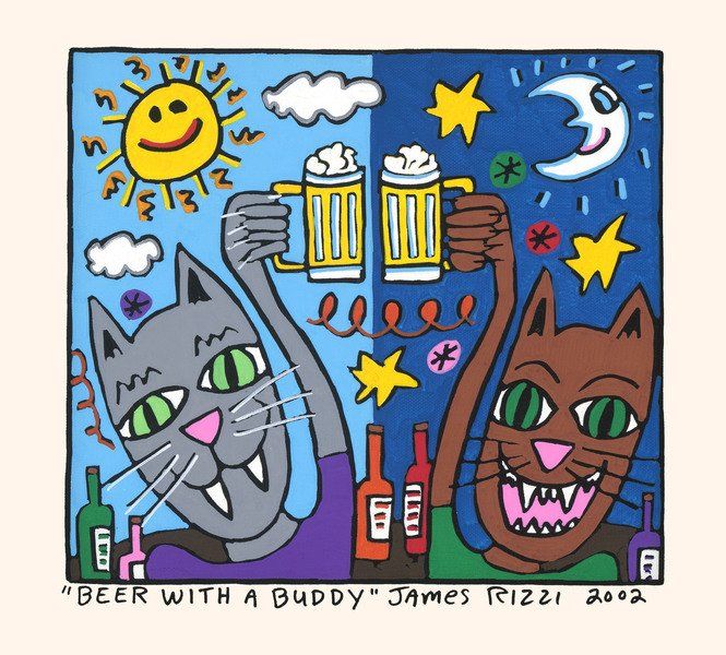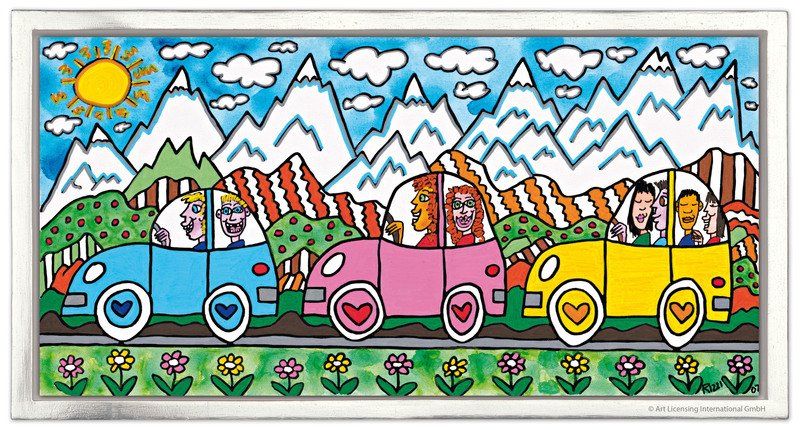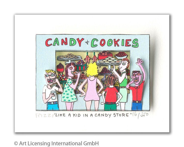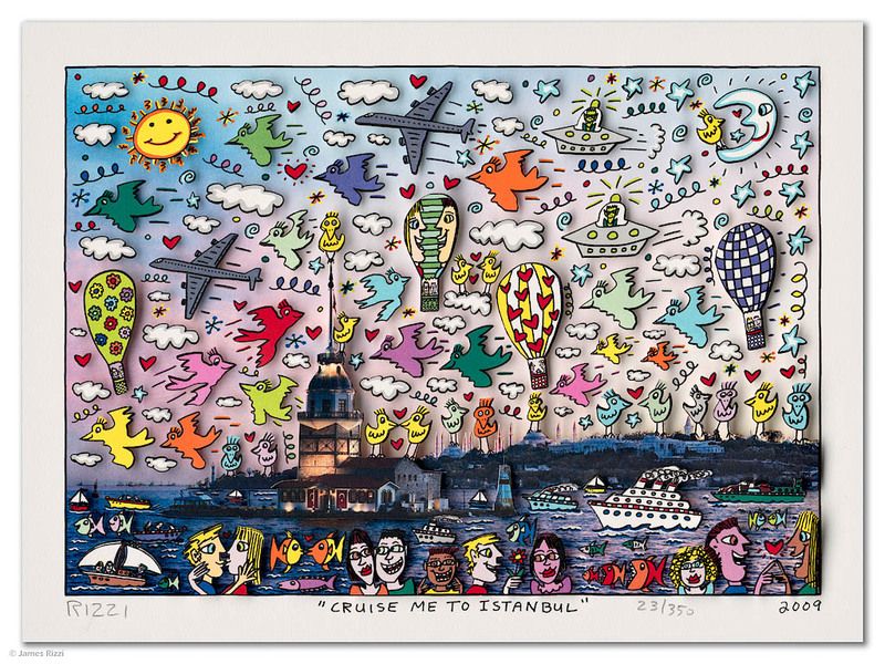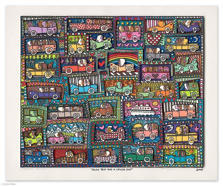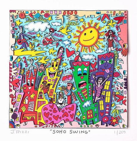 1950 in New York geboren, war James Rizzi ein Künstler der Pop-Art und hatte sich mit seiner naiven Kunst weltweit einen hohen Stellenwert erarbeitet. Seine Gemälde haben sehr häufig seine Heimatstadt New York und deren Menschen und Lebensweisen als Motiv.
