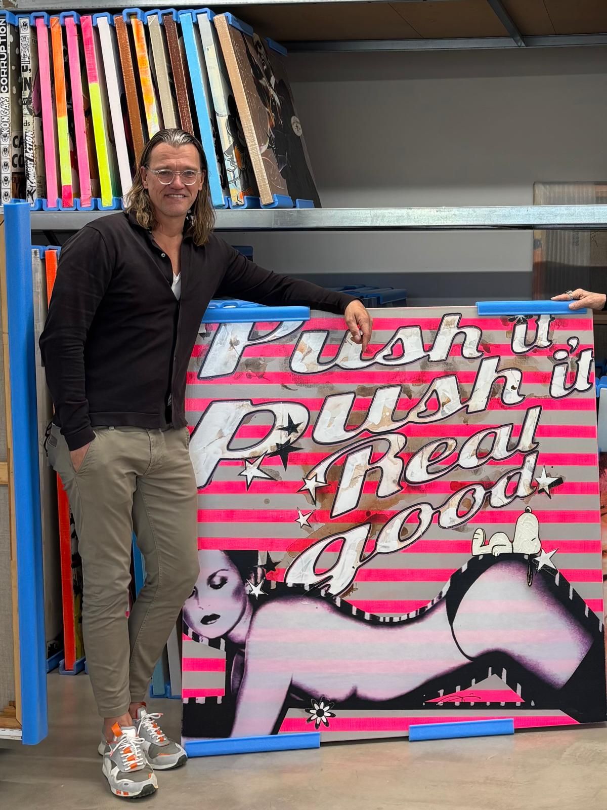 Jörg Döring, geboren in den 1960er Jahren im Ruhrgebiet, lebt und arbeitet heute in Düsseldorf. Seit den 1980er Jahren ist er als Künstler aktiv und hat sich durch die Kombination verschiedener Techniken wie Ölmalerei, Siebdruck und Collage einen Namen gemacht. Mit seiner ausgeklügelten Technik und seinem kreativen Ansatz gelingt es Döring, Werke zu schaffen, die nicht nur visuell faszinieren, sondern auch eine tiefergehende, oft verspielte Bedeutung transportieren.