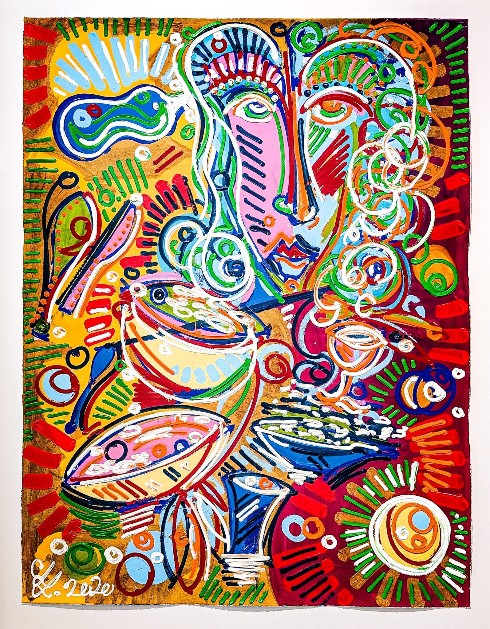 Leon Löwentraut, 1998 in Düsseldorf geboren, hat sich in den letzten Jahren als eine der vielversprechendsten Stimmen der zeitgenössischen Kunst etabliert. Mit seinem einzigartigen, expressiven Stil begeistert er Kunstliebhaber auf der ganzen Welt, von New York bis Singapur, London, Basel und Berlin. In seinen Arbeiten vereint er gestische Farbkombinationen und unkonventionelle Techniken, indem er oft direkt mit der Farbtube arbeitet und nicht den Pinsel benutzt. Löwentraut lässt sich von Meistern wie Picasso, Matisse und Basquiat inspirieren und sucht in seiner Kunst nach einer Form der Freiheit. Die Themen seiner Werke sind vielseitig, von menschlichen Beziehungen und sozialen Dynamiken bis hin zu tiefgründigen Reflexionen über das Spannungsfeld zwischen Optimismus und Kritik. Häufig porträtiert er die Einsamkeit und das innere Leben des Menschen, das hinter der äußeren, oft gesellschaftlich geprägten Fassade verborgen bleibt.