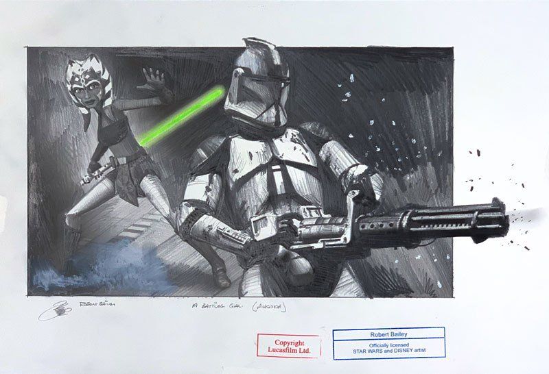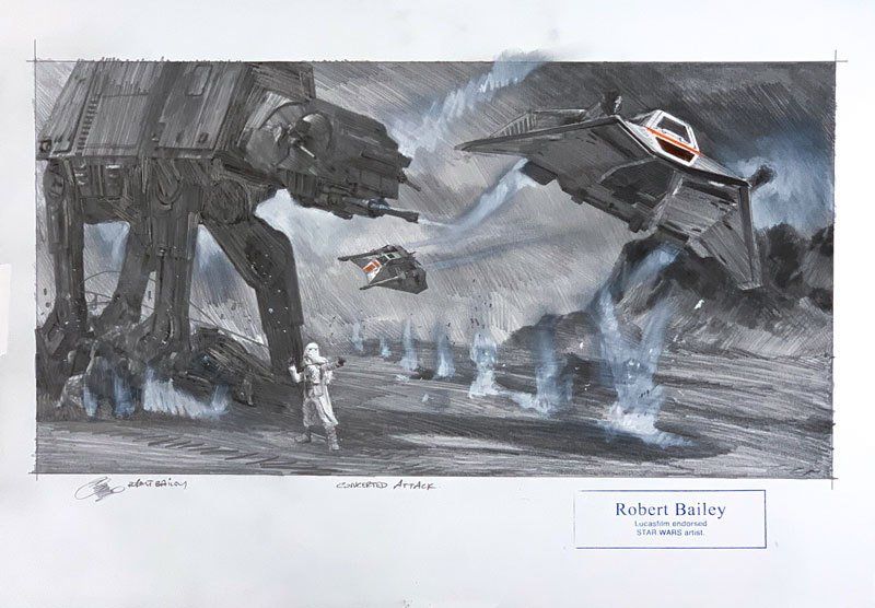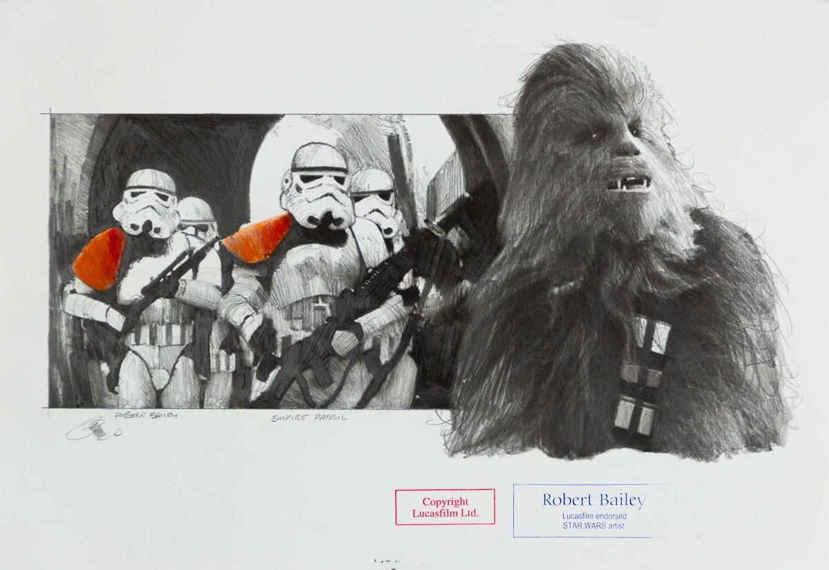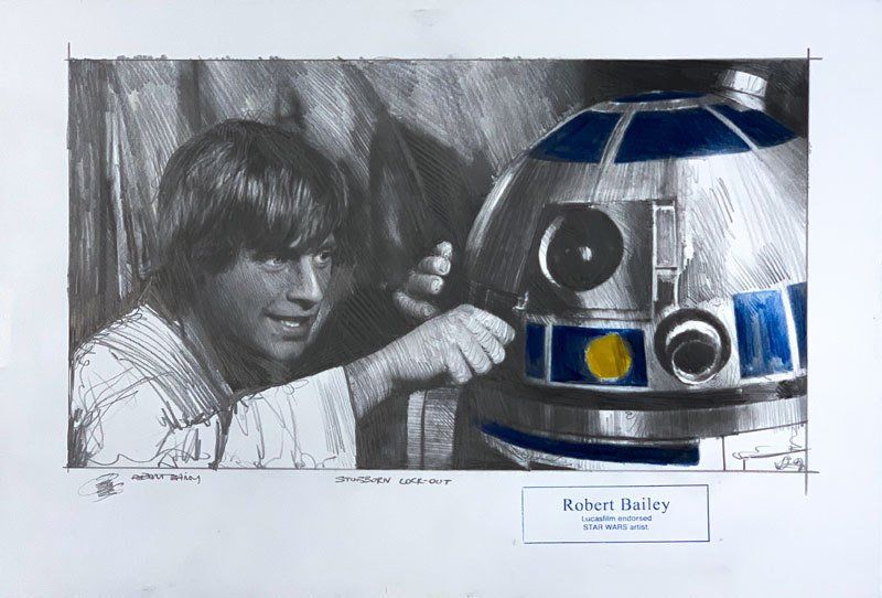 Robert Baileys Lieblinge sind C-3PO und Yoda, wobei er das gesamte Spektrum der Star Wars-Charaktere mit Bleistift nachbildet.