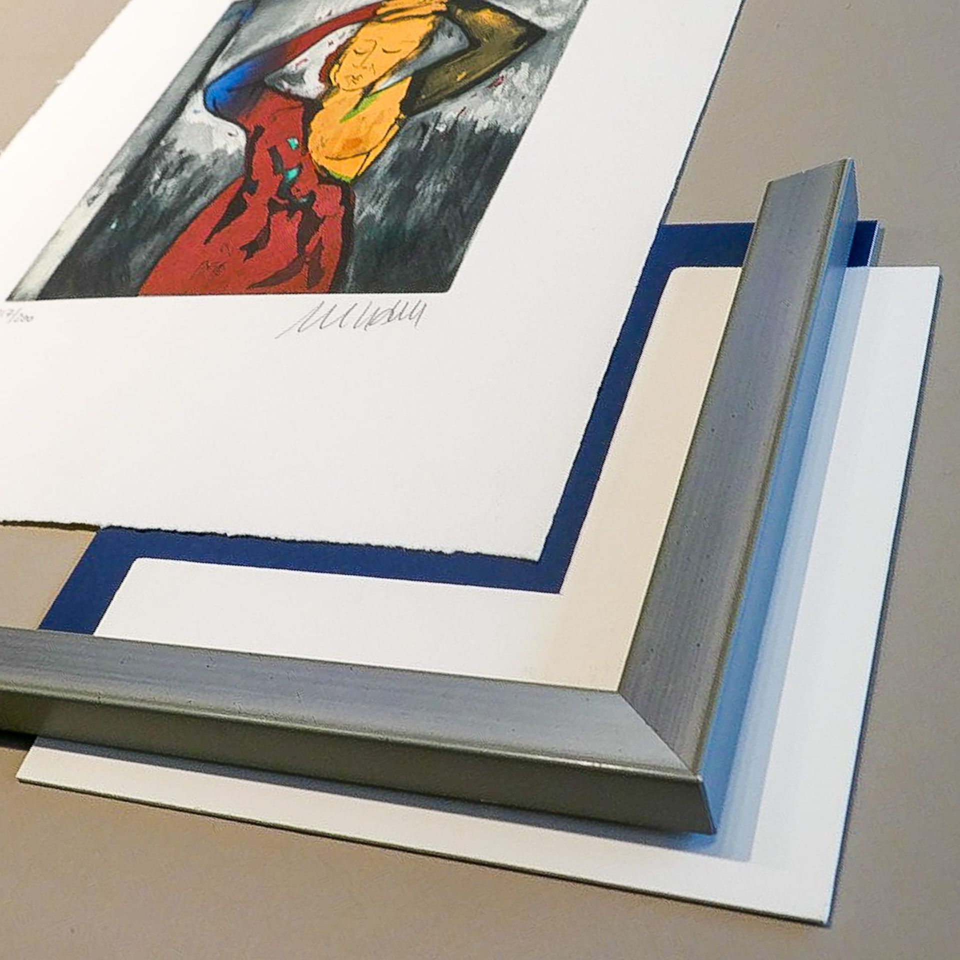 Ein gelungenes Passepartout ist eine Verbindung zwischen Bild und Rahmen, schafft dem Werk Platz und setzt es in Szene. Hier sind der Phantasie keine Grenzen gesetzt.