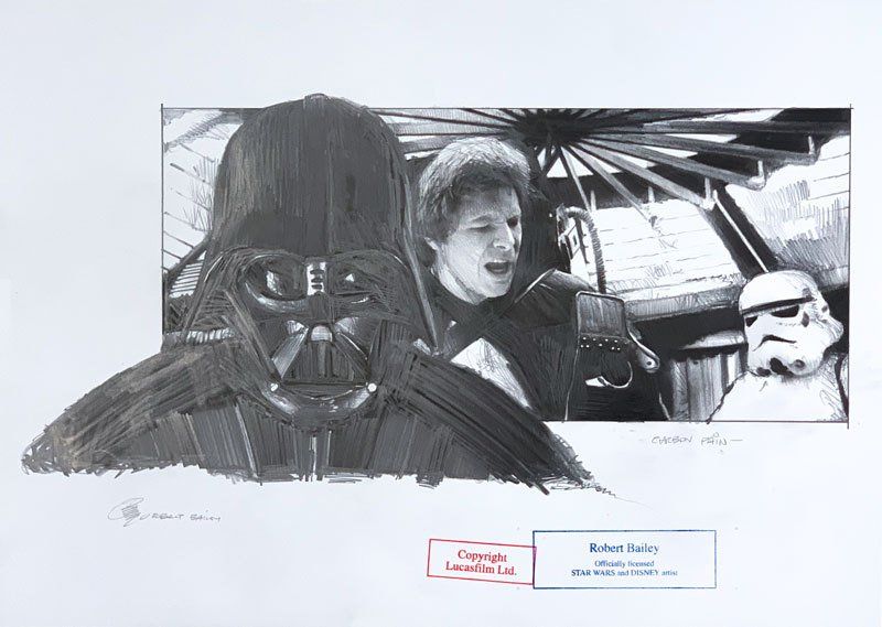 Robert Baileys Lieblinge sind C-3PO und Yoda, wobei er das gesamte Spektrum der Star Wars-Charaktere mit Bleistift nachbildet.